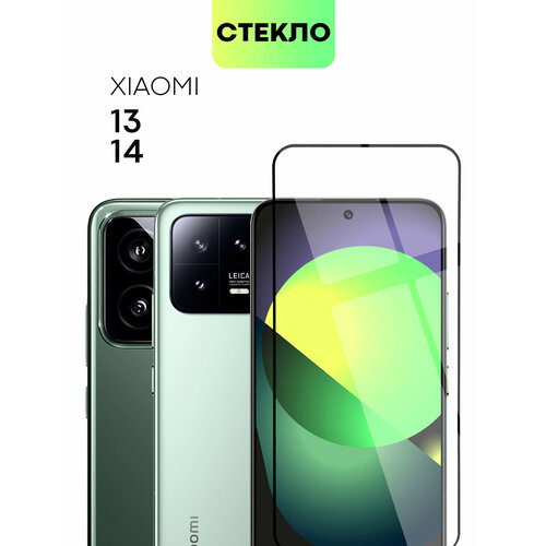 Защитное стекло BROSCORP на Xiaomi 13 и 14 (Сяоми 13 и 14), глянцевое с чёрными рамками