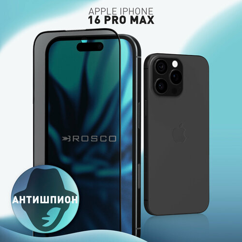Защитное стекло антишпион на Apple iPhone 16 Pro Max (Айфон 16 Про Макс), с эффектом приватности, чёрные рамки, бренд Rosco, 1 шт