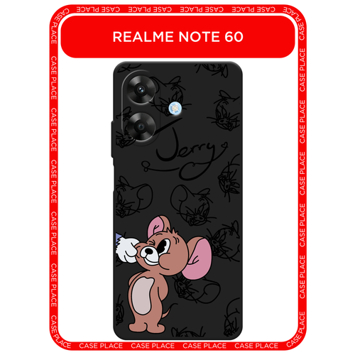 Черный матовый чехол на Realme Note 60/60X / Реалми Нот 60/60X с принтом Щекастый Джерри