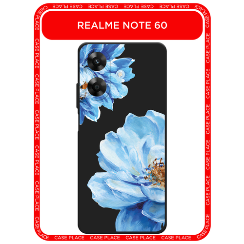 Черный матовый чехол на Realme Note 60/60X / Реалми Нот 60/60X с принтом Голубые клематисы