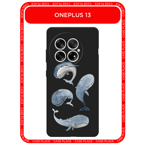 Черный матовый чехол на OnePlus 13 / Ван Плас 13 с принтом Киты