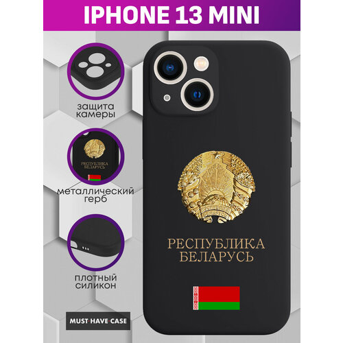 Чехол на iPhone 13 Mini с Металлическим Гербом Белоруссии