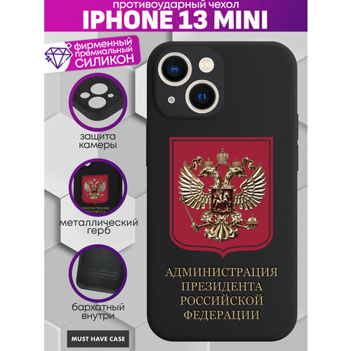 Чехол на iPhone 13 Mini с Золотым металлическим Гербом Администрации президента РФ