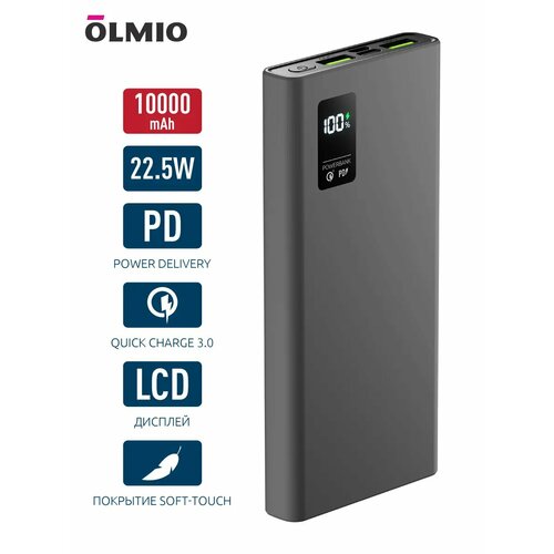 Внешний аккумулятор QR-10, 10000 mAh, 22.5W, Olmio, серый