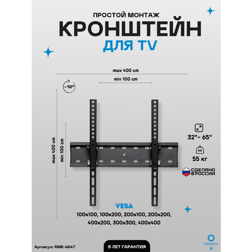 Кронштейн настенный наклонный для ТВ Remounts RMB 404T 32"-55" дюйма
