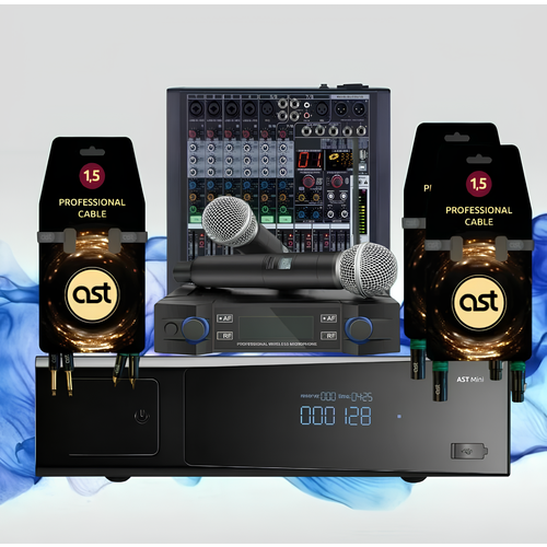 Профессиональный Караоке комплект AST mini Standart Pro с микрофонами AV 205pro, микшером MVT и кабелями коммутации AST