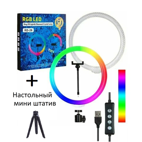 Кольцевая лампа RGB LED цветная светодиодная + штатив / селфи кольцо 26CM 10"