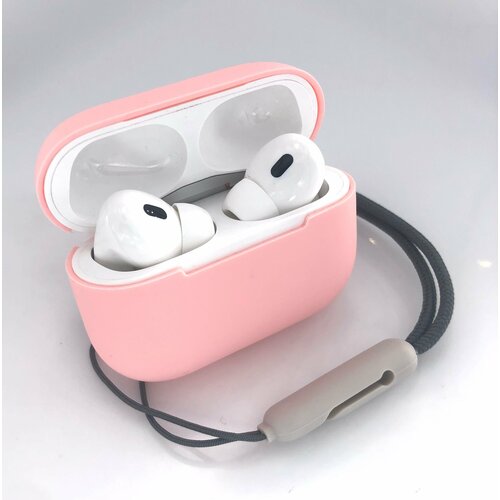 Силиконовый чехол для AirPods Pro 2 с ремешком ультратонкий pink
