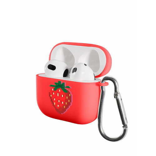 Силиконовый чехол Mcover для беспроводных наушников AirPods 3, с карабином, матовый, Клубника в пикселях