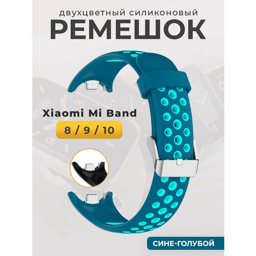 Двухцветный силиконовый ремешок для Mi Band 8/ 9, сине-голубой