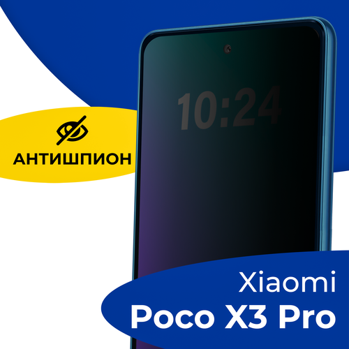 Защитное стекло Антишпион для телефона Xiaomi Poco X3 Pro / Противоударное полноэкранное стекло 5D на смартфон Сяоми Поко Х3 Про / Черное