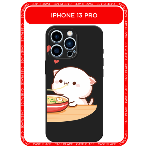 Черный матовый чехол на Apple iPhone 13 Pro / Айфон 13 Про с принтом Белый котик с лапшой