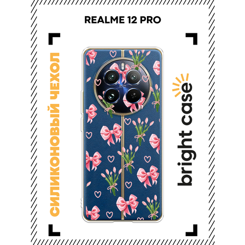 Чехол на Realme 12 Pro/Realme 12 Pro Plus / Реалми 12 Про/Реалми 12 Про Плюс с принтом Бантики и тюльпаны, прозрачный