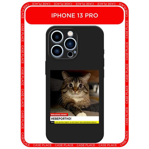 Черный матовый чехол на Apple iPhone 13 Pro / Айфон 13 Про с принтом Невероятный кот