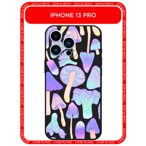 Черный матовый чехол на Apple iPhone 13 Pro / Айфон 13 Про с принтом Пастельные грибы
