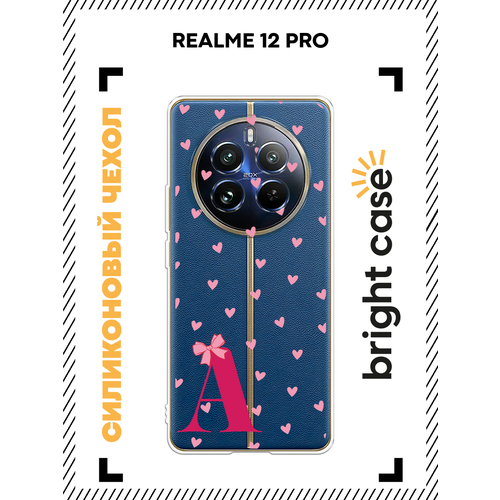 Чехол на Realme 12 Pro/Realme 12 Pro Plus / Реалми 12 Про/Реалми 12 Про Плюс с принтом Буква A сердечки, прозрачный