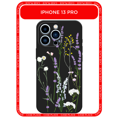 Черный матовый чехол на Apple iPhone 13 Pro / Айфон 13 Про с принтом Полевые цветы