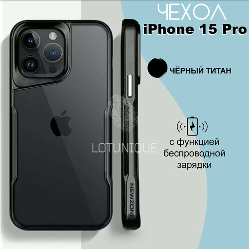 Защитный чехол c функцией беспроводной зарядки для iPhone 15 Pro, Black Titanium, Черный