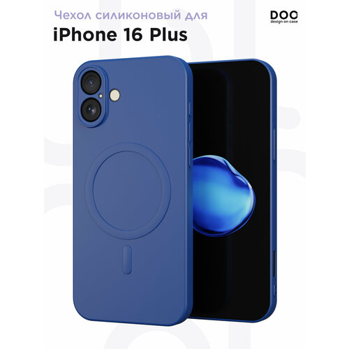 Чехол DesignOnCase "синий", для iPhone 16 Plus, противоударный, силикон, soft-touch, с Магнитом