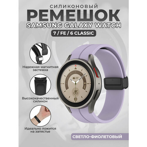 Силиконовый ремешок для Samsung Galaxy Watch 7 / FE / 6 Classic, с черной магнитной застежкой, светло-фиолетовый