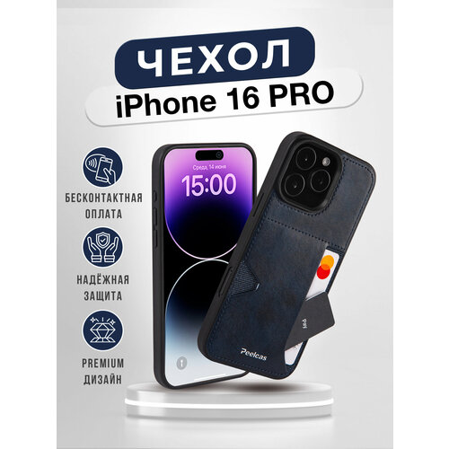 Чехол Peelcas, для iPhone 16 Pro, с карманом, противоударный, soft touch, темно-синий