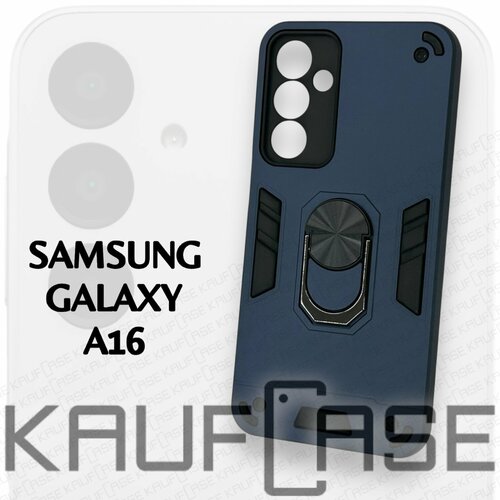 Противоударный чехол на Samsung A16 5G (6.7"), темно-синий. Кольцо-держатель и магнитное крепление, яркие пластиковые защитные вставки
