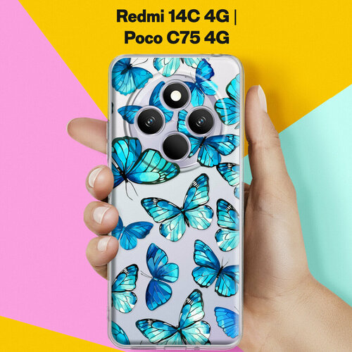 Силиконовый чехол на Xiaomi Redmi 14C 4G / Poco C75 4G с принтом "Синие Бабочки" с прозрачными бортиками