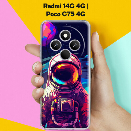 Силиконовый чехол на Xiaomi Redmi 14C 4G / Poco C75 4G с принтом "Астронавт" с прозрачными бортиками