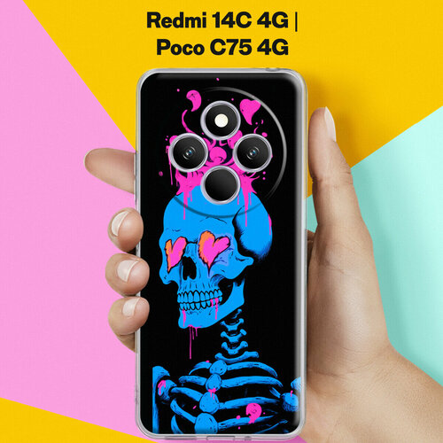 Силиконовый чехол на Xiaomi Redmi 14C 4G / Poco C75 4G с принтом "Череп с сердцами" с прозрачными бортиками