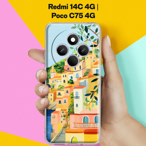 Силиконовый чехол на Xiaomi Redmi 14C 4G / Poco C75 4G с принтом "Город миниатюра" с прозрачными бортиками