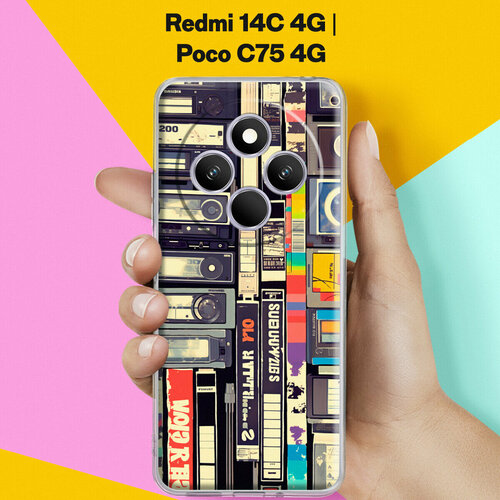 Силиконовый чехол на Xiaomi Redmi 14C 4G / Poco C75 4G с принтом "Кассеты" с прозрачными бортиками