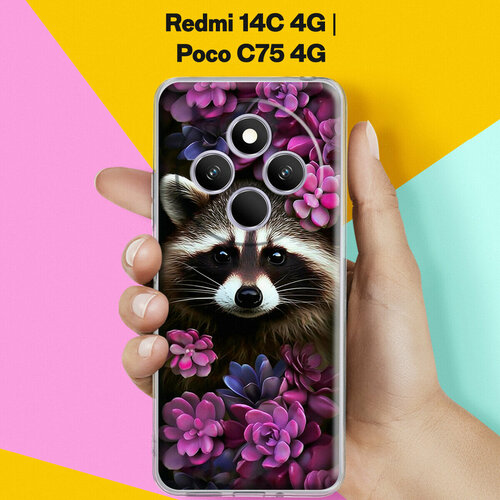 Силиконовый чехол на Xiaomi Redmi 14C 4G / Poco C75 4G с принтом "Енот" с прозрачными бортиками