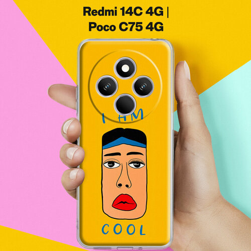 Силиконовый чехол на Xiaomi Redmi 14C 4G / Poco C75 4G с принтом "I Am Cool" с прозрачными бортиками