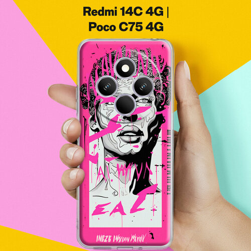 Силиконовый чехол на Xiaomi Redmi 14C 4G / Poco C75 4G с принтом "Розовый принт" с прозрачными бортиками