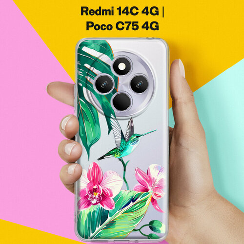 Силиконовый чехол на Xiaomi Redmi 14C 4G / Poco C75 4G с принтом "Колибри" с прозрачными бортиками