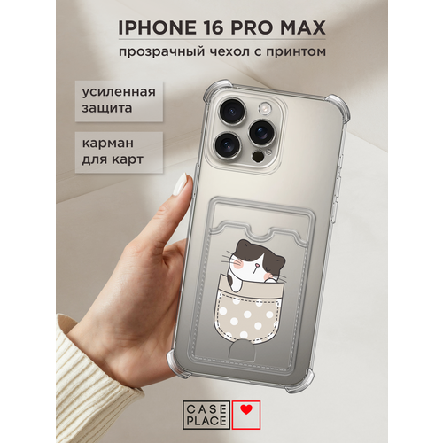 Чехол на Apple iPhone 16 Pro Max (Айфон 16 Про Макс) с картой и принтом Котик спит в кармане