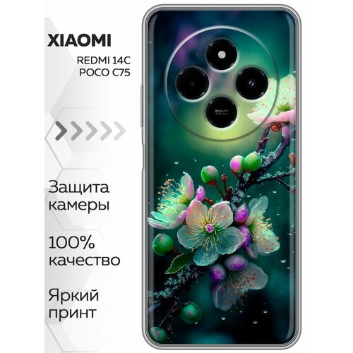 Чехол для Xiaomi Redmi 14C 4g, Poco C75 с принтом Женский принт цветы (Ксиоми Редми 14С 4g, Поко С75)