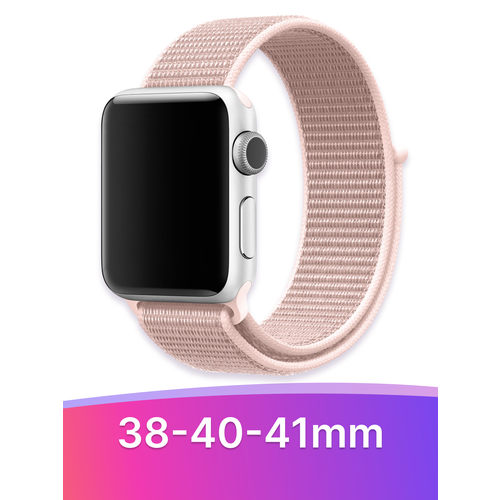Нейлоновый ремешок для часов Apple Watch 38-40-41 mm, Series 1-9, SE / Тканевый фитнес браслет на липучке Эпл Вотч 38-40-41 мм (Светло-розовый)