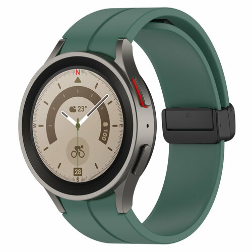 Силиконовый ремешок для Samsung Galaxy Watch 4/5/6, L, серебристая застежка, темно-зеленый