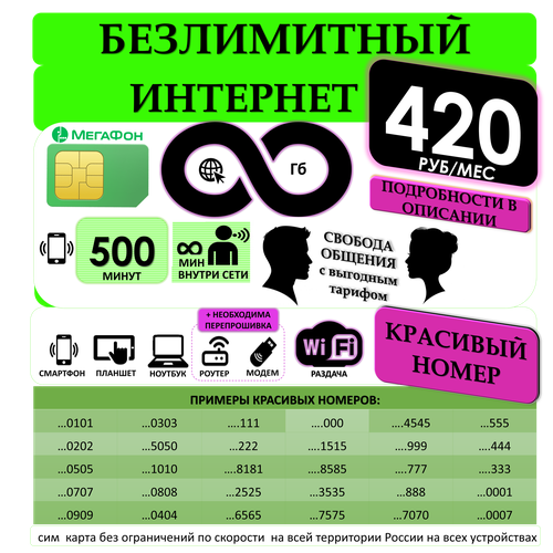 Сим карта Мегафон с раздачей безлимитного интернета и красивым номером с оформлением на ВАС!