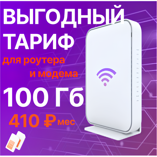 Сим-карта 100 ГБ интернета для любого устройства с безлимитной раздачей по России