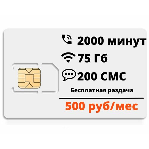 Сим-карта "Супер тариф" 2000мин/75гб, безлимит внутри сети, бесплатная раздача