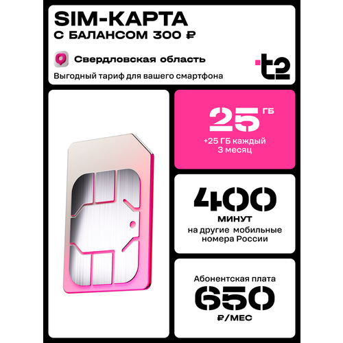 Sim-карта t2 для Свердловской области, баланс 300 рублей