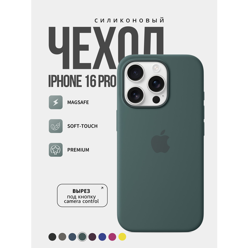 Чехол силиконовый для iPhone 16 Pro, с поддержкой беспроводной зарядки, Soft touch, цвет зеленый