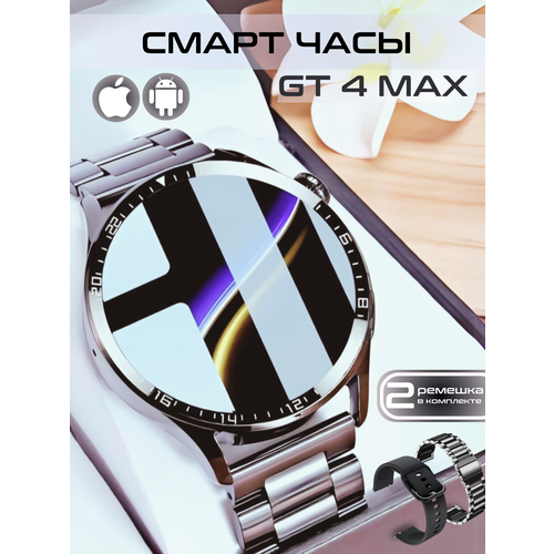 Умные часы Smart watch GT4 MAX 48mm, 2 ремешка, смарт круглые, электронные, мужские, наручные, фитнес, серебряный