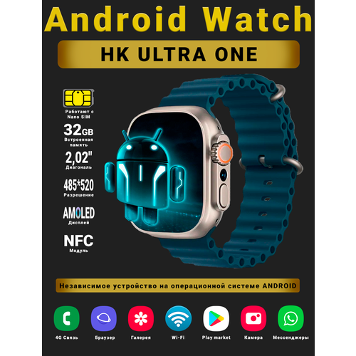Умные смарт часы PREMIUM Android Watch HK Ultra One 4G, Лазурно-синий