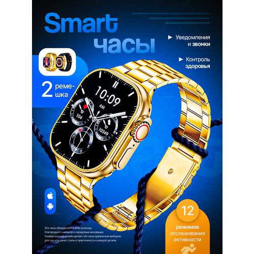 Смарт часы X-BO 8 Ultra PREMIUM Series Smart Watch 49мм, iOS, Android, Bluetooth, 2 ремешка, золотые