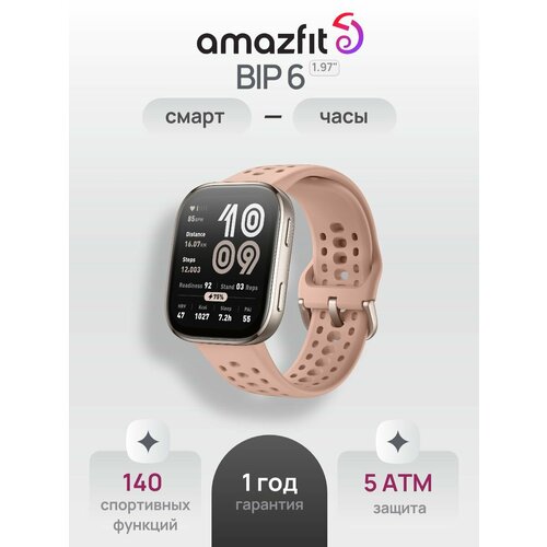 Смарт-часы Amazfit BIP 6, AMOLED, пульсомер, Bluetooth, силикон, IP68