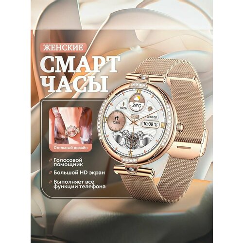Смарт часы женские круглые, умные часы наручные с функцией звонка для IOS, Android, спортивные, водонепроницаемые