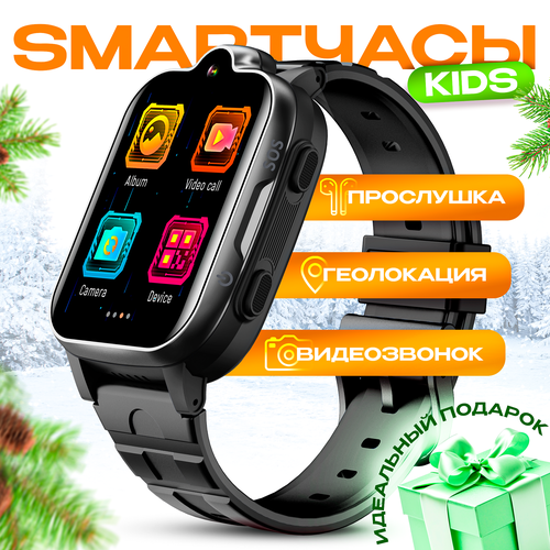 Смарт часы умные детские 4G GPS, с прослушкой, с камерой, кнопкой SOS часы-телефон для детей, умные часы, kidphone для подростка и ребенка черные
